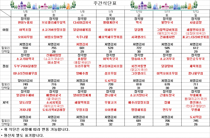 1월 1째주 주간식단표 페이지 정보 작성자 김선희 댓글 0건 조회 2,676회 작성일 25-01-03 13:18 목록 본문 ` 이전글2024.12 아름해든집 업무추진비 공개 25.01.06 다음글12월 마지막주 주간식단표 24.12.27 댓글 0 댓글목록 등록된 댓글이 없습니다.