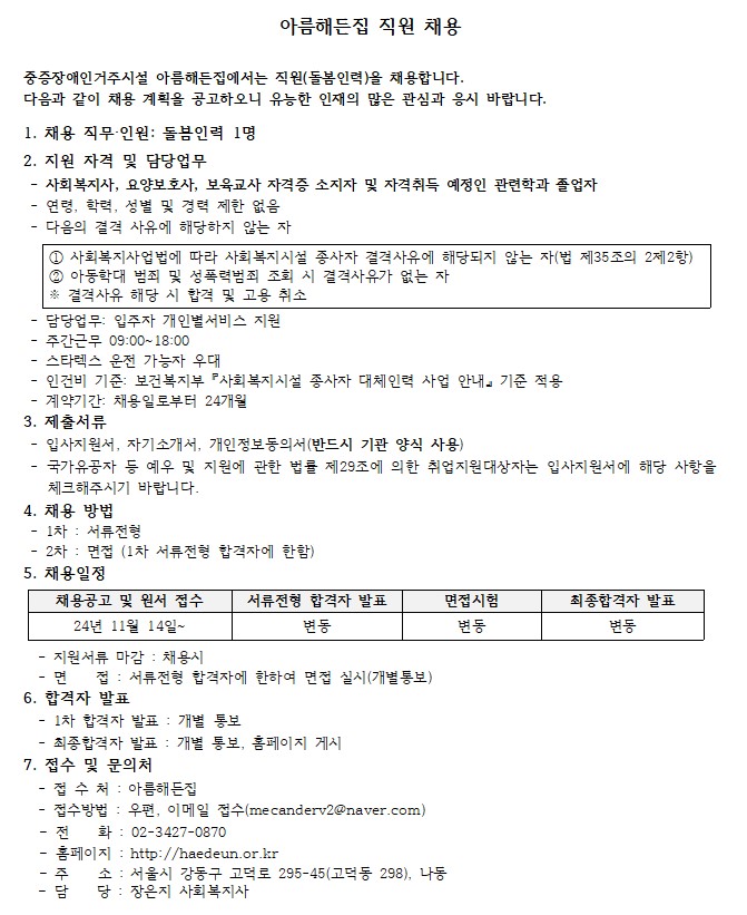 아름해든집 직원-돌봄인력 채용 > 공지사항