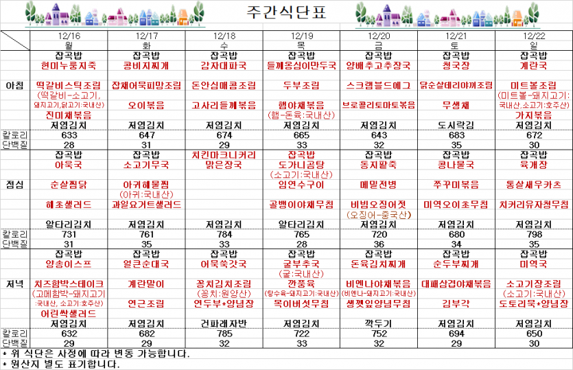 12월 3째주 주간식단표 페이지 정보 작성자 김선희 댓글 0건 조회 2,766회 작성일 24-12-13 14:02 목록 본문 ` 이전글아름해든집 생활지도원 긴급 채용 24.12.18 다음글12월 2째주 주간식단표 24.12.06 댓글 0 댓글목록 등록된 댓글이 없습니다.