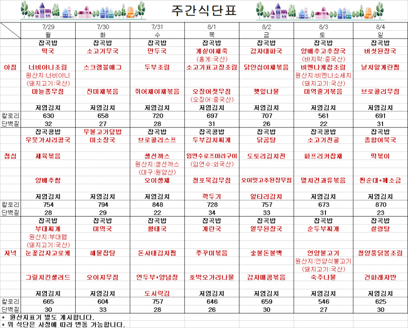 7월 마지막주 주간식단표 페이지 정보 작성자 김선희 댓글 0건 조회 3,749회 작성일 24-07-26 14:17 목록 본문 ` 이전글아름해든집 생활지도원 채용 공고 24.07.30 다음글7월 4째주 주간식단표 24.07.19 댓글 0 댓글목록 등록된 댓글이 없습니다.