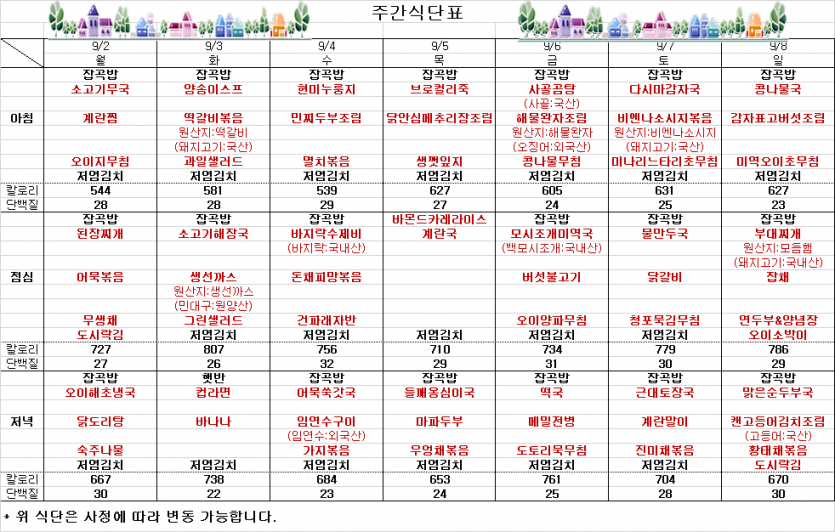 9월 1째주 주간식단표 페이지 정보 작성자 김선희 댓글 0건 조회 3,650회 작성일 24-08-30 09:49 목록 본문 ` 이전글2024.08 아름해든집 업무추진비 공개 24.09.04 다음글8월 마지막주 주간식단표 24.08.23 댓글 0 댓글목록 등록된 댓글이 없습니다.