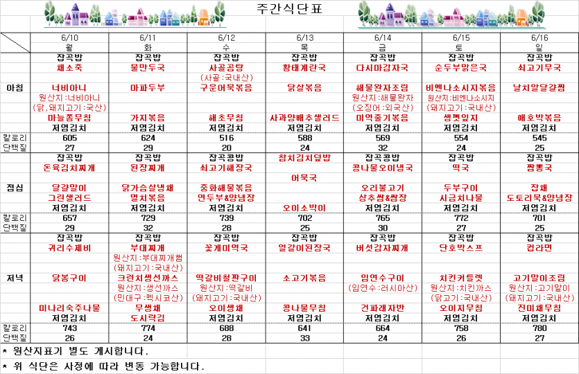 6월 2째주 주간식단표 페이지 정보 작성자 김선희 댓글 0건 조회 4,134회 작성일 24-06-07 15:00 목록 본문 ` 이전글2024년 5월분 아름해든집 후원금(물품) 수입 및 사용명세서 공개 24.06.08 다음글2024.05 아름해든집 업무추진비 공개 24.06.05 댓글 0 댓글목록 등록된 댓글이 없습니다.