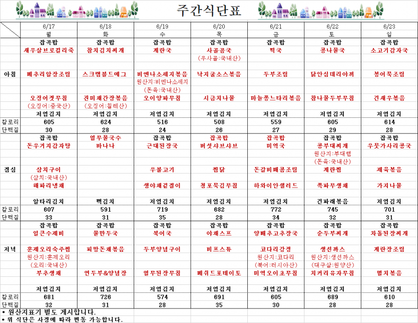 6월 3째주 주간식단표 페이지 정보 작성자 김선희 댓글 0건 조회 4,077회 작성일 24-06-14 13:24 목록 본문 ` 이전글6월 마지막주 주간식단표 24.06.20 다음글2024년 5월분 아름해든집 후원금(물품) 수입 및 사용명세서 공개 24.06.08 댓글 0 댓글목록 등록된 댓글이 없습니다.