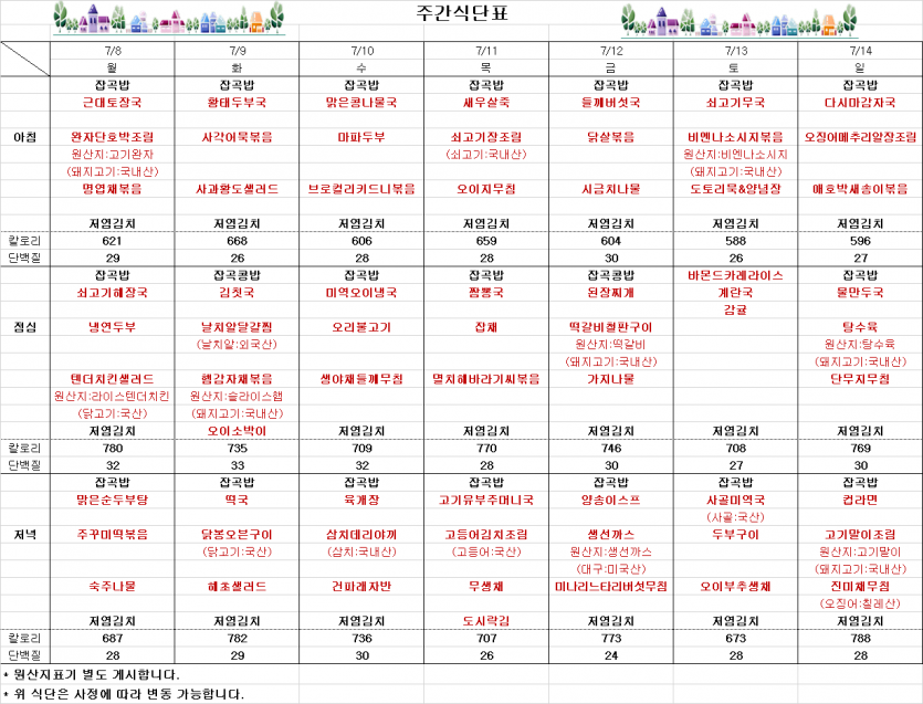 7월 2째주 주간식단표 페이지 정보 작성자 김선희 댓글 0건 조회 3,847회 작성일 24-07-05 09:53 목록 본문 ` 이전글2024년 6월분 아름해든집 후원금(물품) 수입 및 사용명세서 공개 24.07.10 다음글7월 월간계획서 24.07.01 댓글 0 댓글목록 등록된 댓글이 없습니다.