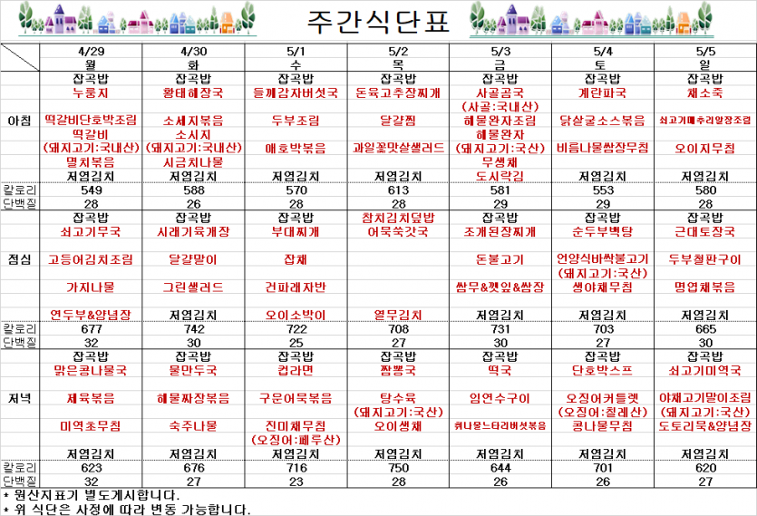 4월 마지막주 주간식단표 페이지 정보 작성자 김선희 댓글 0건 조회 4,315회 작성일 24-04-30 09:55 목록 본문 ` 이전글5월 1째주 주간식단표 24.05.03 다음글4월 4째주 주간식단표 24.04.19 댓글 0 댓글목록 등록된 댓글이 없습니다.