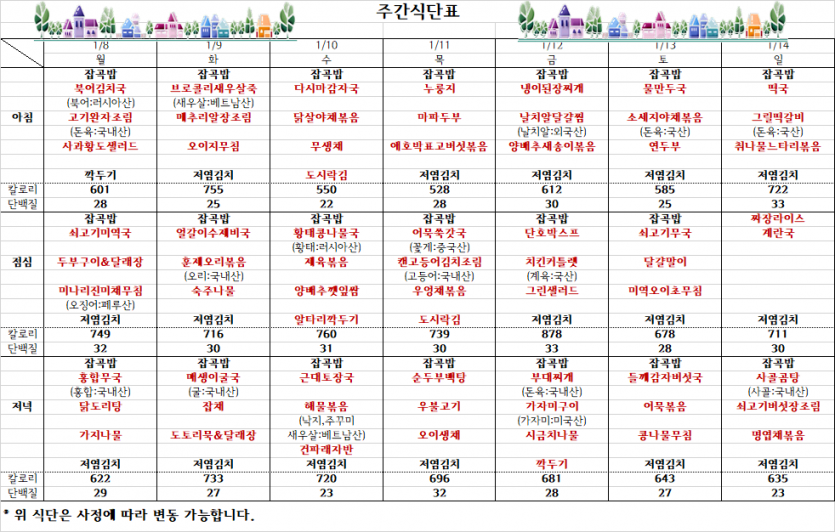 1월 2째주 주간식단표 페이지 정보 작성자 김선희 댓글 0건 조회 4,999회 작성일 24-01-05 11:13 목록 본문 ` 이전글2023.12 아름해든집 업무추진비 공개 24.01.08 다음글1월 첫째주 주간 식단표 23.12.28 댓글 0 댓글목록 등록된 댓글이 없습니다.