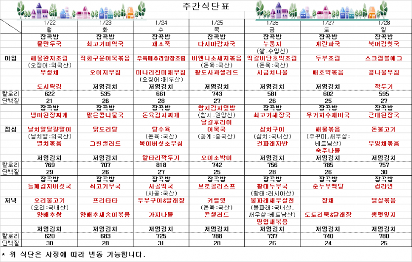 1월 4째주 주간식단표 페이지 정보 작성자 김선희 댓글 0건 조회 4,846회 작성일 24-01-18 17:41 목록 본문 ` 이전글1월 마지막주 주간식단표 24.01.26 다음글2023년 12월분 아름해든집 후원금(물품) 수입 및 사용명세서 공개 24.01.12 댓글 0 댓글목록 등록된 댓글이 없습니다.