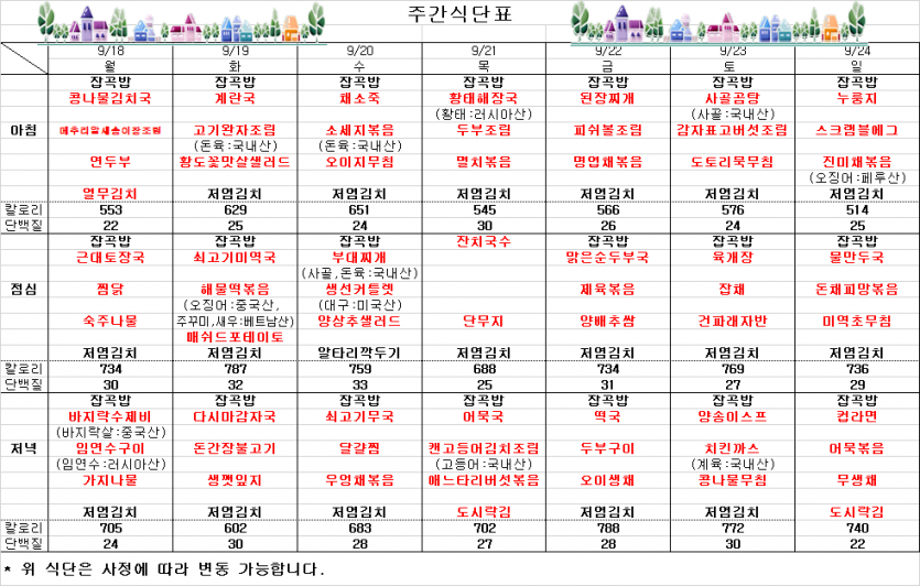 9월 3째주 주간식단표 페이지 정보 작성자 김선희 댓글 0건 조회 5,388회 작성일 23-09-15 09:57 목록 본문 ` 이전글아름해든집 생활지도원 채용 23.09.21 다음글9월 2째주 주간식단표 23.09.08 댓글 0 댓글목록 등록된 댓글이 없습니다.