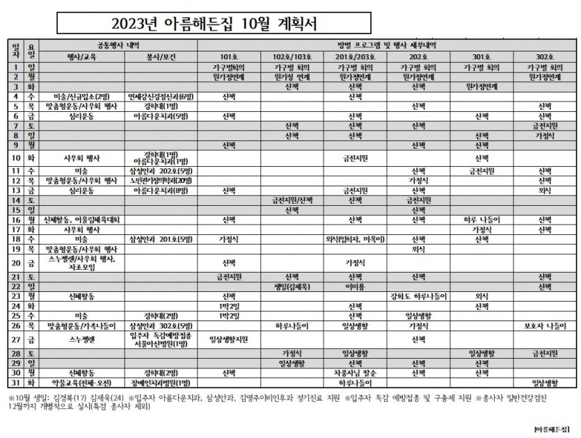 10월 월간계획서 페이지 정보 작성자 장은지 댓글 0건 조회 4,999회 작성일 23-10-04 08:39 목록 본문 10월 월간계획서 이전글11월 월간계획서 23.11.01 다음글9월 월간계획서 23.09.01 댓글 0 댓글목록 등록된 댓글이 없습니다.