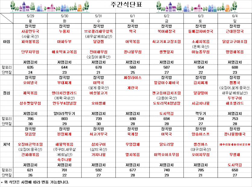 5월 마지막주 주간식단표 페이지 정보 작성자 김선희 댓글 0건 조회 6,225회 작성일 23-05-26 14:11 목록 본문 ` 이전글아름해든집 생활지도원 채용 공고 23.07.10 다음글2023년 3월분 아름해든집 후원금(물품) 수입 및 사용명세서 공개 23.04.10 댓글 0 댓글목록 등록된 댓글이 없습니다.