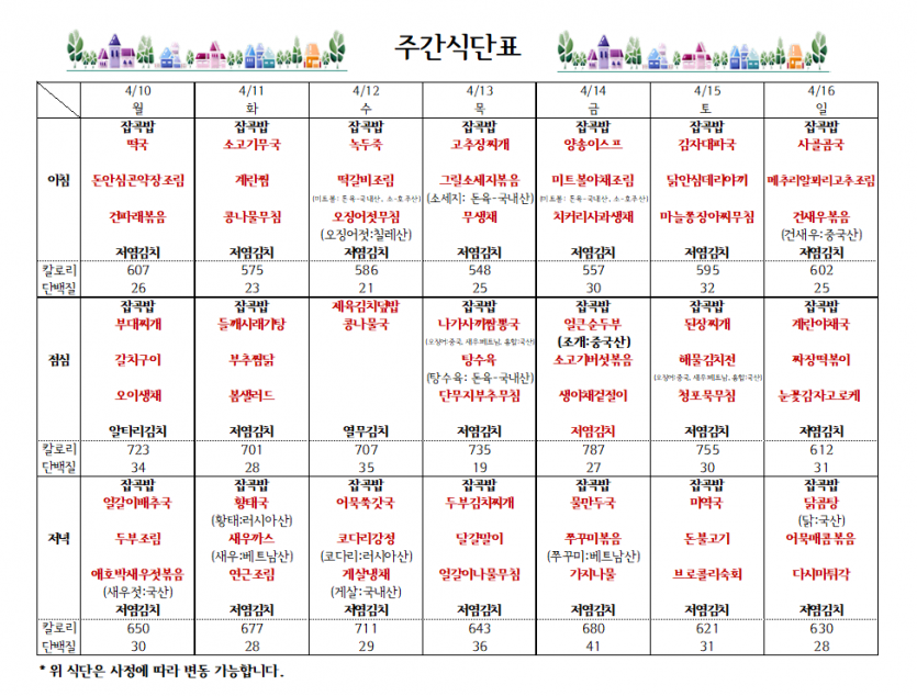 4월 2째주 주간식단표 페이지 정보 작성자 김선희 댓글 0건 조회 6,809회 작성일 23-04-07 16:50 목록 본문 ` 이전글1차 서류 합격자 발표 22.10.11 다음글2023.03 아름해든집 업무추진비 공개 23.04.06 댓글 0 댓글목록 등록된 댓글이 없습니다.