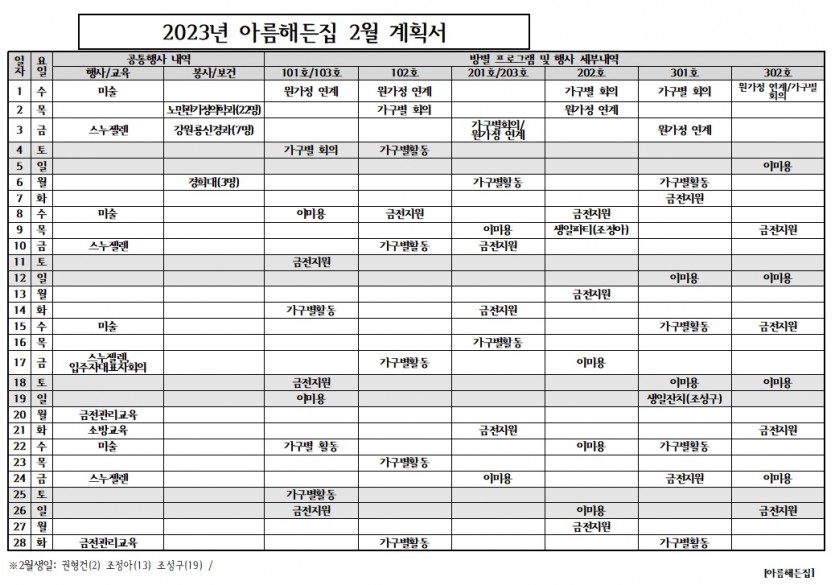 2월 월간계획표 > 공지사항
