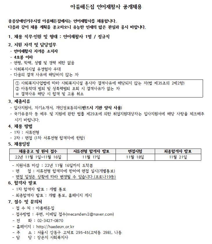 언어재활사 채용 > 공지사항