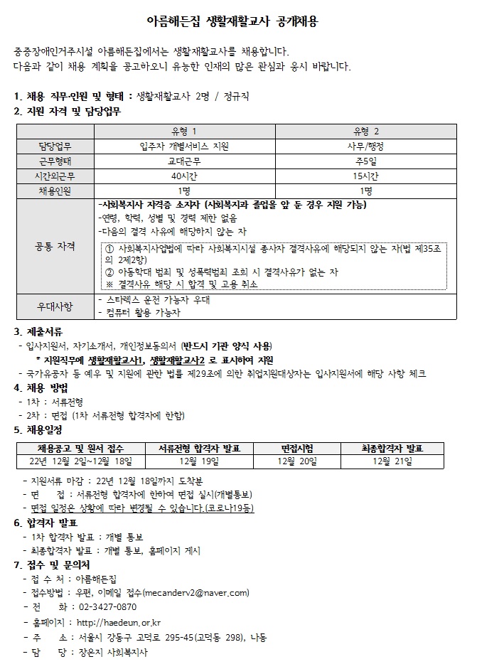 생활재활교사 채용