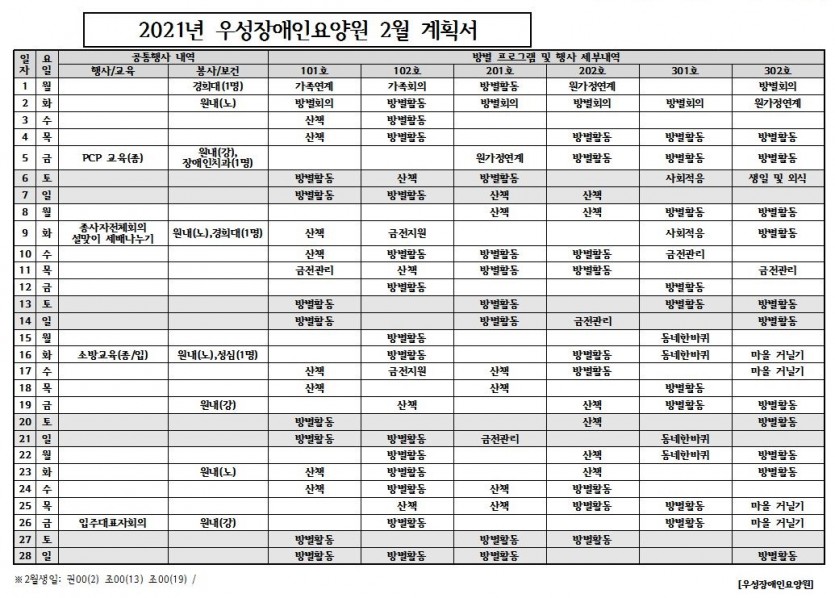 2021년 2월 월간계획표 페이지 정보 작성자 장은지 댓글 0건 조회 10,016회 작성일 21-02-04 14:46 목록 본문 2021년 2월 월간계획표 이전글2021년 3월 월간계획표 21.03.03 다음글2021년 1월 월간계획표 21.01.04 댓글 0 댓글목록 등록된 댓글이 없습니다.